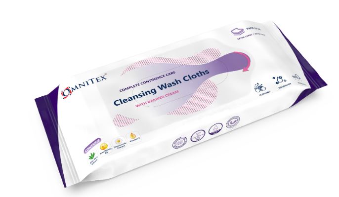 Omnitex Complete Continence care Wash Cloths, impregnated with Medical Grade Barrier Cream. All in One system to Clean - Nourish - Protect the user especially those that dealing with incontinence problems. Rinse free cleaning makes it easier for bed ridden patients to keep clean and fresh.