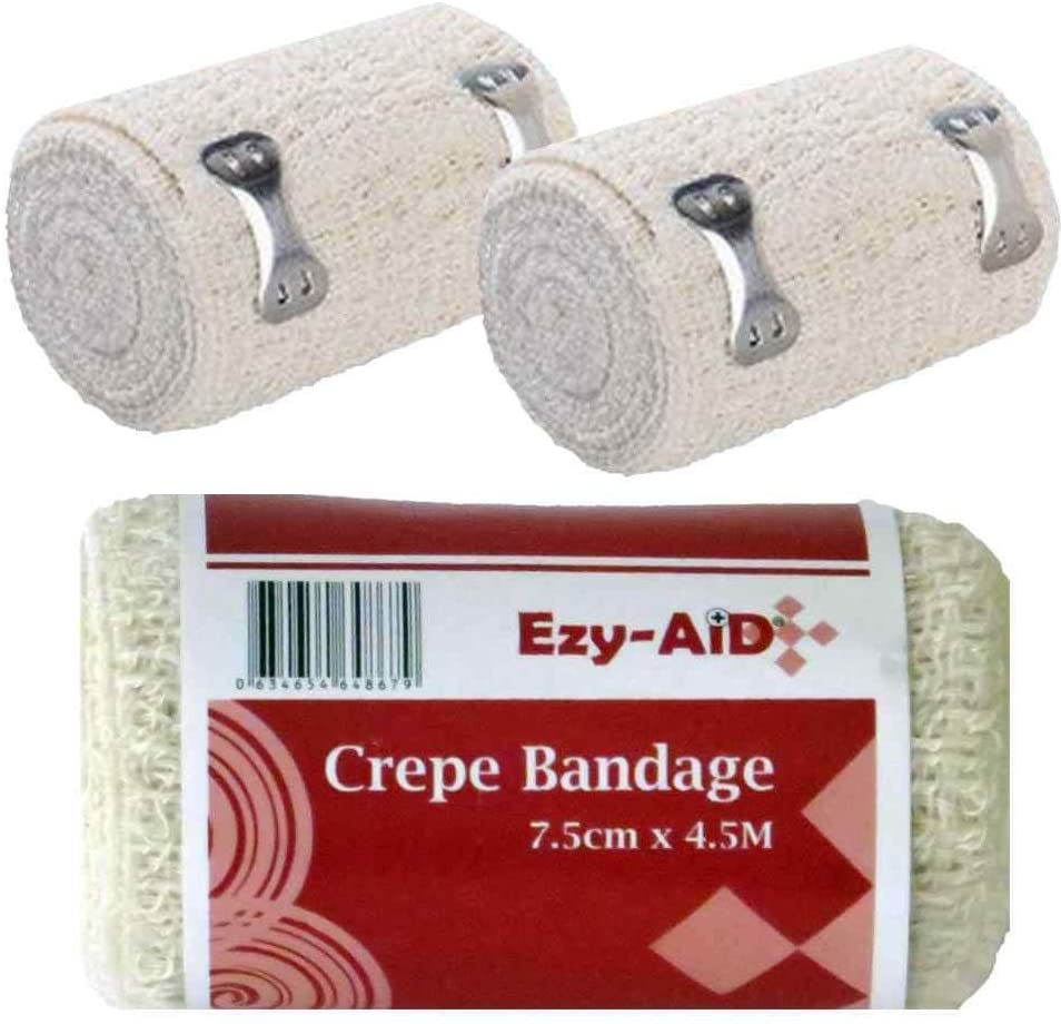 Ezy-Aid Crepe Bandage 7.5cm x 4.5M - Premium Quality - Pack of 12 Superior Quality Crepe Bandage from Ezy-Aid - Medical Grade Product, Hence no compromise on Quality. 12 Rolls Pack, Each Roll 7.5cm x 4.5Meters. Each Roll Contains 2 Clamps. CE Certified Suitable for Sprains & Strains and Light Support. Individually Wrapped Rolls. Washable in Warm Soapy Water