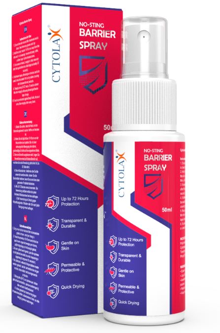 Cytolax Barrier Spray is a 100% Silicone, alcohol free solution that forms a transparent protective and breathable layer between the skin and the air or surface that the skin may come in contact with. Hypoallergenic and quick drying formula ensures no irritation or burning sensation.