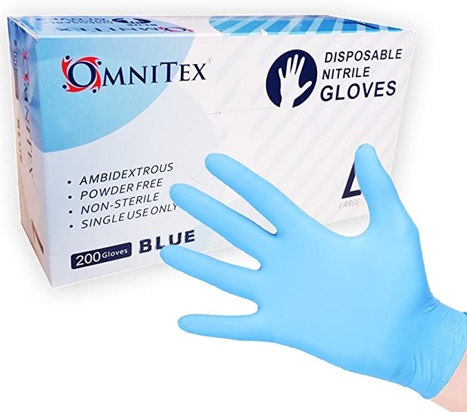 Omnitex Nitrile Blue Gloves are Powder Free, Box of 200.