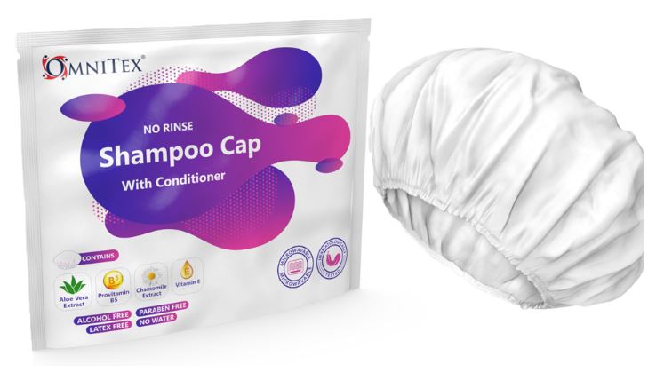 Omnitex Premium Rinse Free Shampoo Cap microwaveable with Conditioner & Vitamins, Nourish & Protect with Herbal Extracts & Barrier Cream. No Water, No Parabens, Latex Free, Alcohol Free